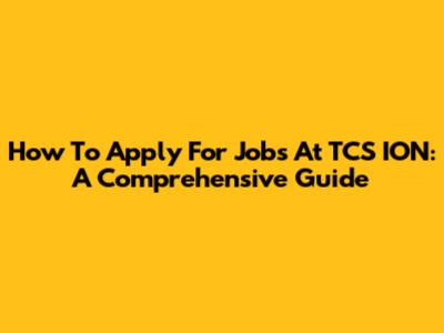 How To Apply For Jobs At TCS ION: A Comprehensive Guide