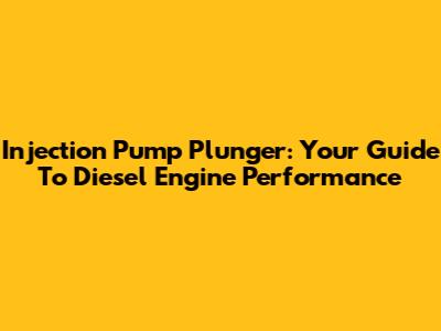 Injection Pump Plunger: Your Guide To Diesel Engine Performance