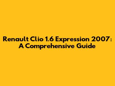 Renault Clio 1.6 Expression 2007: A Comprehensive Guide