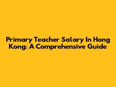 Primary Teacher Salary In Hong Kong: A Comprehensive Guide