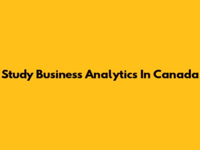 Study Business Analytics In Canada