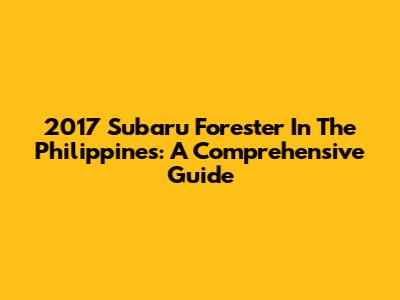 2017 Subaru Forester In The Philippines: A Comprehensive Guide