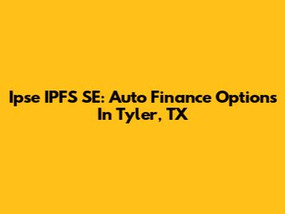Ipse IPFS SE: Auto Finance Options In Tyler, TX