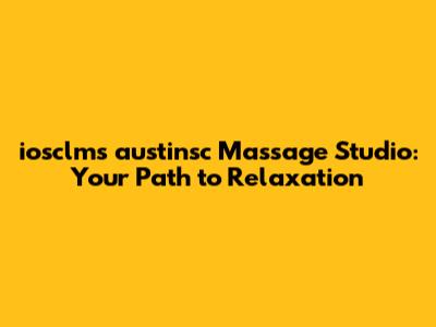 Choosing iosclms austinsc Massage Studio means choosing a path towards holistic well-being. Here's what you can look forward to: