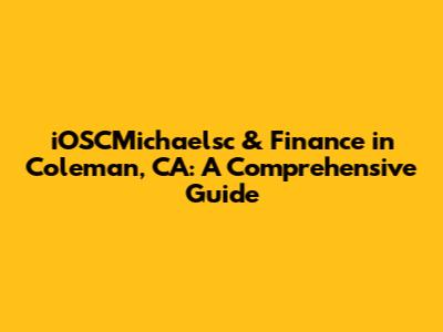 Hey guys! Let's dive into the world of iOSCMichaelsc and finance in beautiful Coleman, CA. This guide is your go-to resource, covering everything from understanding what iOSCMichaelsc is all about to navigating the financial landscape of this vibrant community. We'll explore the key aspects, the important players, and the things you need to know to make smart financial choices. So, buckle up, because we're about to embark on a journey through the intersection of tech and finance in Coleman. I'll break it down for you, making sure it's easy to understand and packed with helpful insights. Let's get started, shall we?