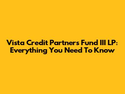 Vista Credit Partners Fund III LP: Everything You Need To Know