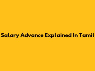 Salary Advance Explained In Tamil