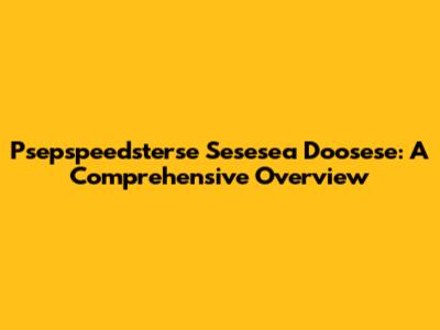Psepspeedsterse Sesesea Doosese: A Comprehensive Overview