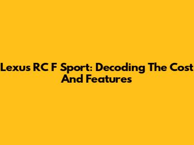 Lexus RC F Sport: Decoding The Cost And Features