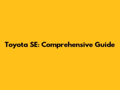 Toyota SE: Comprehensive Guide