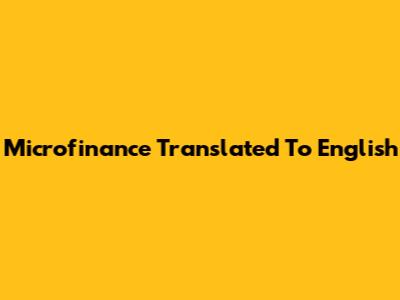 Microfinance Translated To English