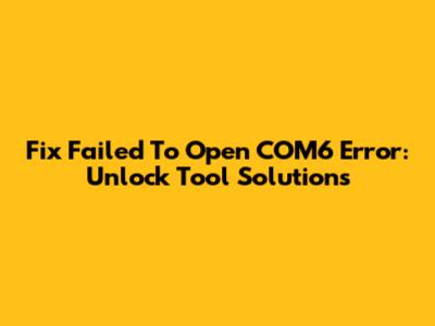 Fix 'Failed To Open COM6' Error: Unlock Tool Solutions