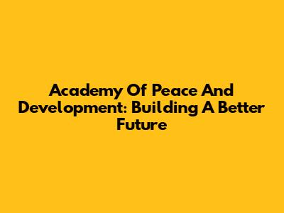 Academy Of Peace And Development: Building A Better Future