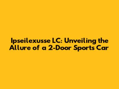 Hey car enthusiasts! Ever heard of the Ipseilexusse LC? If you're into sleek, sporty rides, you're in for a treat. This article is your ultimate guide, diving deep into everything you need to know about the Ipseilexusse LC, the two-door sports car that's turning heads. We'll explore its design, performance, features, and why it's a fantastic choice for anyone craving a thrilling driving experience. Get ready to buckle up because we are going for a ride!