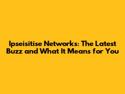 Latest News: What's Happening in the World of Ipseisitise Networks?