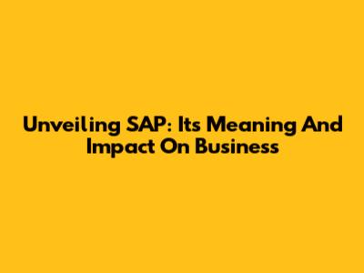 Unveiling SAP: Its Meaning And Impact On Business