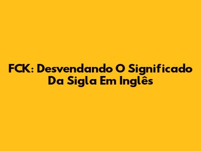 FCK: Desvendando O Significado Da Sigla Em Inglês