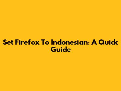 Set Firefox To Indonesian: A Quick Guide