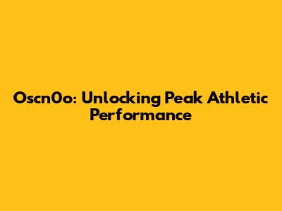 Oscn0o: Unlocking Peak Athletic Performance