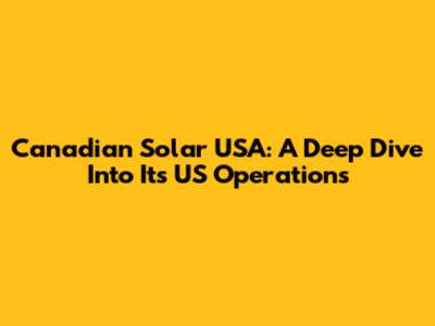 Canadian Solar USA: A Deep Dive Into Its US Operations