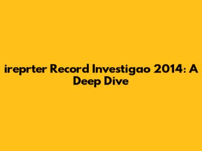 By understanding the ireprter Record Investigao 2014, we not only gain insight into past events but also equip ourselves with valuable knowledge for the future. Keep exploring, keep learning, and stay curious!