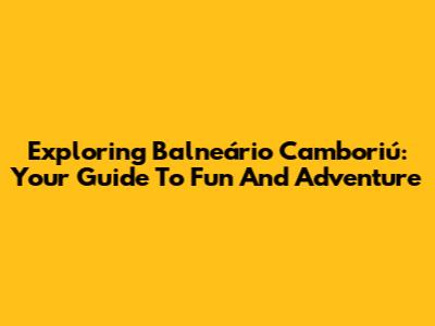 Exploring Balneário Camboriú: Your Guide To Fun And Adventure