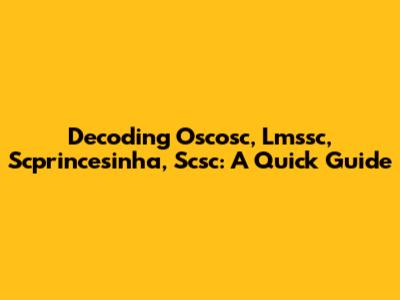 Decoding Oscosc, Lmssc, Scprincesinha, Scsc: A Quick Guide