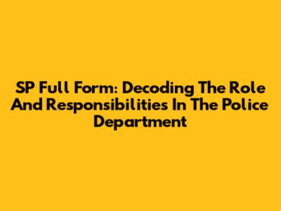 SP Full Form: Decoding The Role And Responsibilities In The Police Department