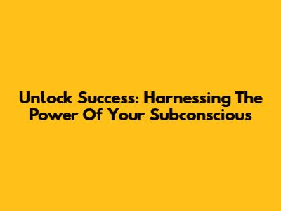 Unlock Success: Harnessing The Power Of Your Subconscious