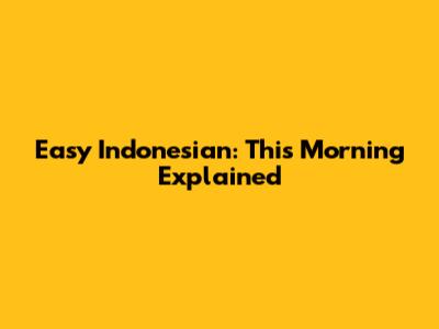 Easy Indonesian: 'This Morning' Explained