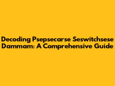Decoding Psepsecarse Seswitchsese Dammam: A Comprehensive Guide
