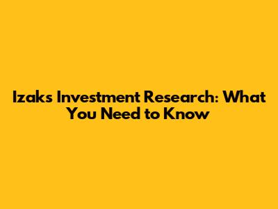 Izak's Investment Research: What You Need To Know