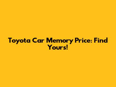 Toyota Car Memory Price: Find Yours!