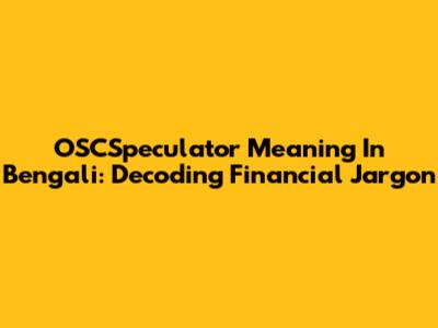 OSCSpeculator Meaning In Bengali: Decoding Financial Jargon