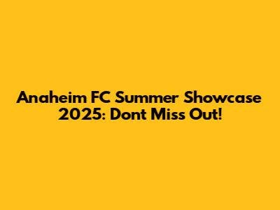Anaheim FC Summer Showcase 2025: Don't Miss Out!