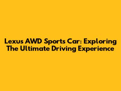 Lexus AWD Sports Car: Exploring The Ultimate Driving Experience