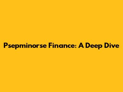 Psepminorse Finance: A Deep Dive