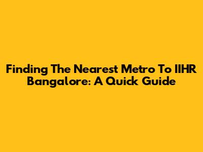 Finding The Nearest Metro To IIHR Bangalore: A Quick Guide