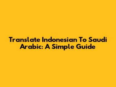 Translate Indonesian To Saudi Arabic: A Simple Guide