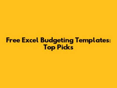 Free Excel Budgeting Templates: Top Picks