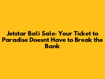 Unveiling the Secrets of the Jetstar Bali Sale
