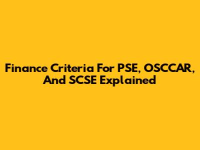 Finance Criteria For PSE, OSCCAR, And SCSE Explained