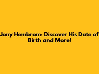 Let's dive into everything you need to know about Jony Hembrom, focusing on nailing down that elusive date of birth and exploring why this information might be important. Finding accurate biographical details can sometimes feel like navigating a maze, but we're here to make it straightforward and engaging!