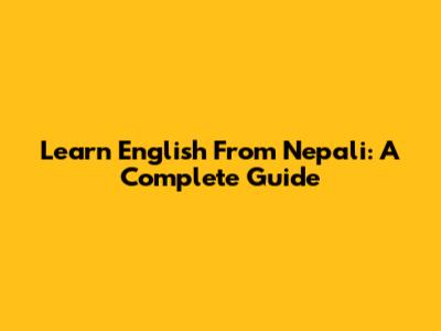 Learn English From Nepali: A Complete Guide
