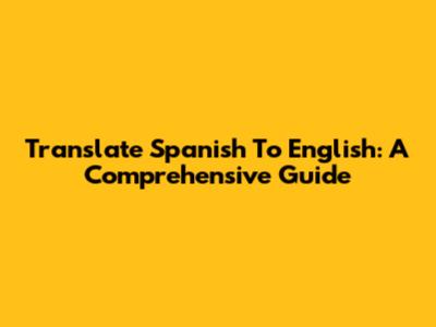 Translate Spanish To English: A Comprehensive Guide