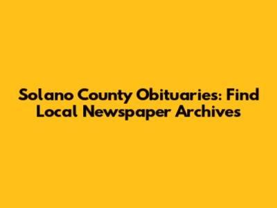 Solano County Obituaries: Find Local Newspaper Archives