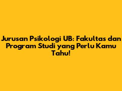 Guys, kalau kalian lagi kepikiran mau kuliah jurusan psikologi, pasti salah satu pertanyaan yang muncul di benak kalian adalah, "Psikologi masuk fakultas apa sih di UB (Universitas Brawijaya)?" Nah, di artikel ini, kita bakal kupas tuntas tentang jurusan psikologi di UB, mulai dari fakultas tempat bernaung, program studi yang tersedia, sampai hal-hal menarik lainnya yang perlu kalian tahu. Jadi, siap-siap ya, karena kita bakal jalan-jalan seru menyusuri dunia psikologi di UB!