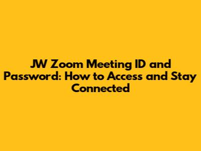 In today's digital age, staying connected with our community is more important than ever. For many Jehovah's Witnesses, JW Zoom meetings have become a vital part of their spiritual and social lives. However, accessing these meetings requires the correct meeting ID and password. This article will guide you through everything you need to know about obtaining and using JW Zoom meeting IDs and passwords, ensuring you never miss out on important gatherings.