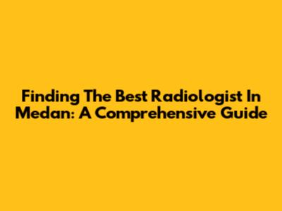 Finding The Best Radiologist In Medan: A Comprehensive Guide