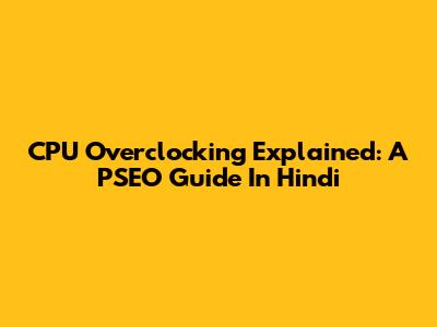 CPU Overclocking Explained: A PSEO Guide In Hindi
